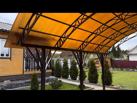 Навес для машины из поликарбоната во дворе частного дома #навесы #спецкаркас